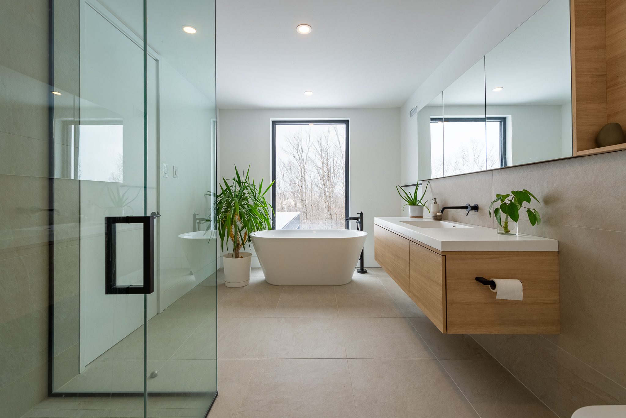 The bathrooms are calm and uncluttered, the living areas soothing and designed to breathe. Everywhere, a balance between contrast and softness, between clean lines and quiet warmth. A clear, elegant home that looks to the future.