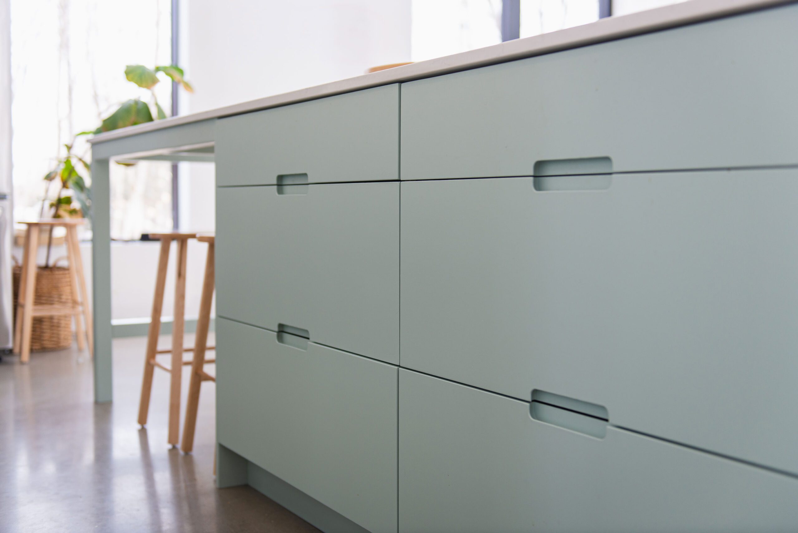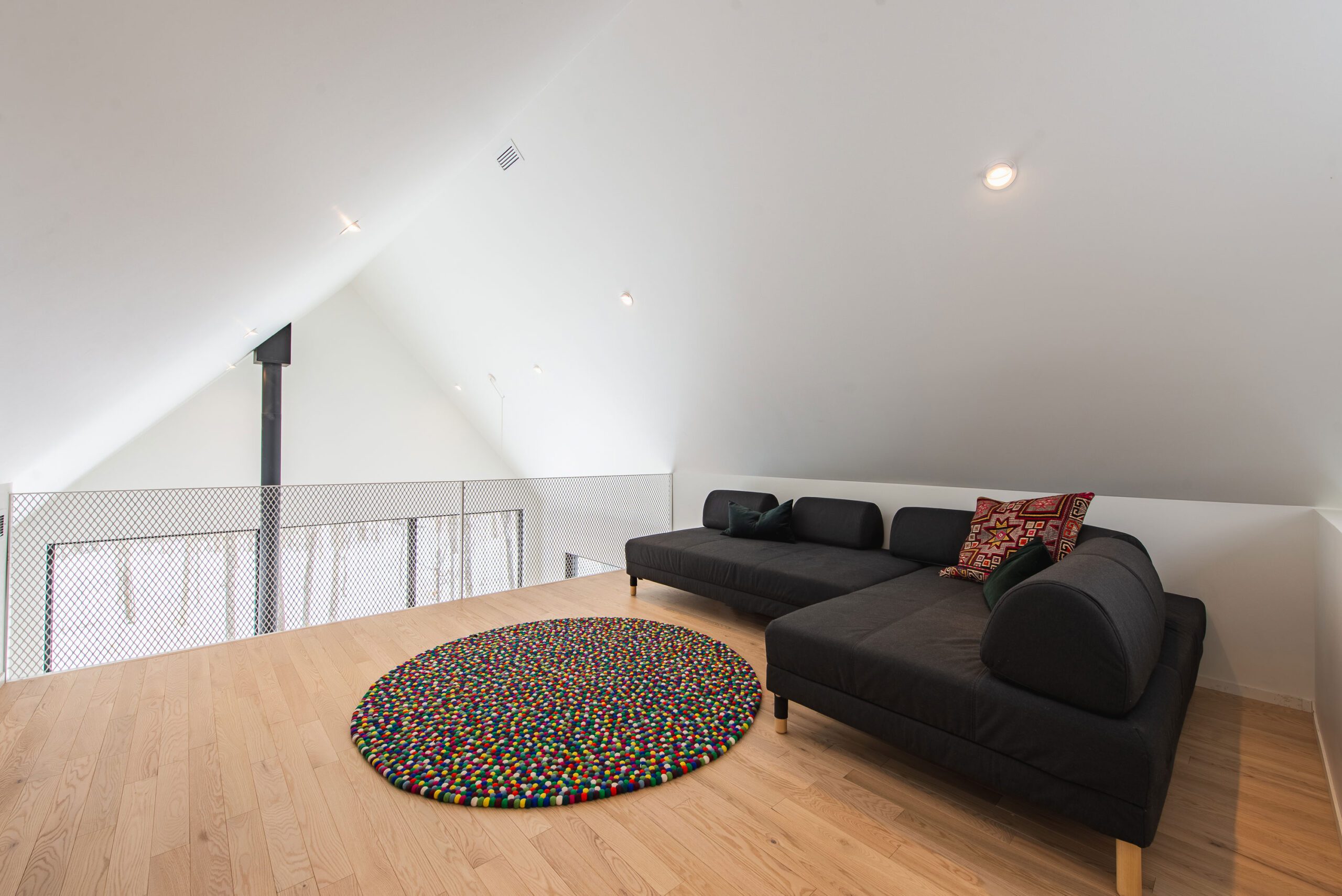 À l’intérieur, la maison offre une ambiance calme et feutrée, baignée de lumière. Le bois naturel y est omniprésent — dans les armoires, les meubles intégrés, les plafonds ou les claustras —, apportant chaleur et texture. Chaque étage révèle un univers unique, à l’image des personnes qui l’habitent. C’est un lieu intime et enveloppant, où le design se fait discret pour mieux laisser la nature entrer.